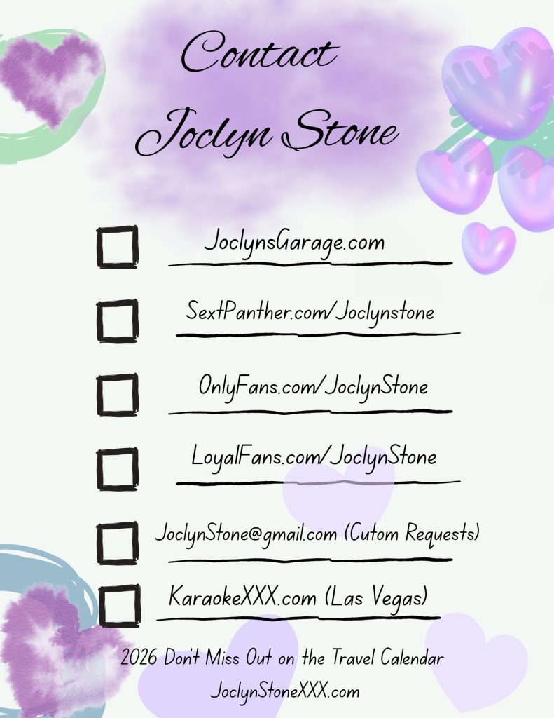FaceBook: FaceBook.com/JoclynStone OR Facebook.com/JoclynStoneSickAddictions